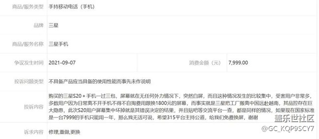 帖子名稱: 三星白屏問題售后維權(quán)