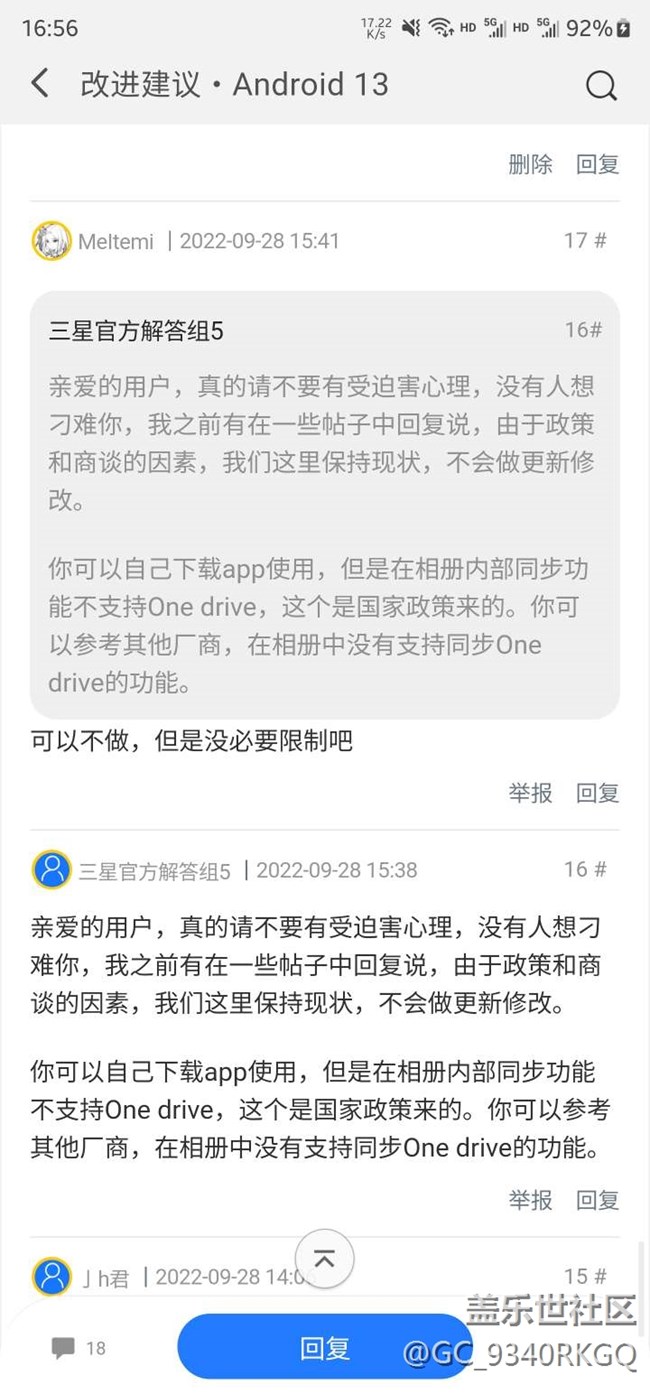 帖子名稱: 國行三星已經(jīng)確認(rèn)不會開放onedrive相冊云備份并擺爛