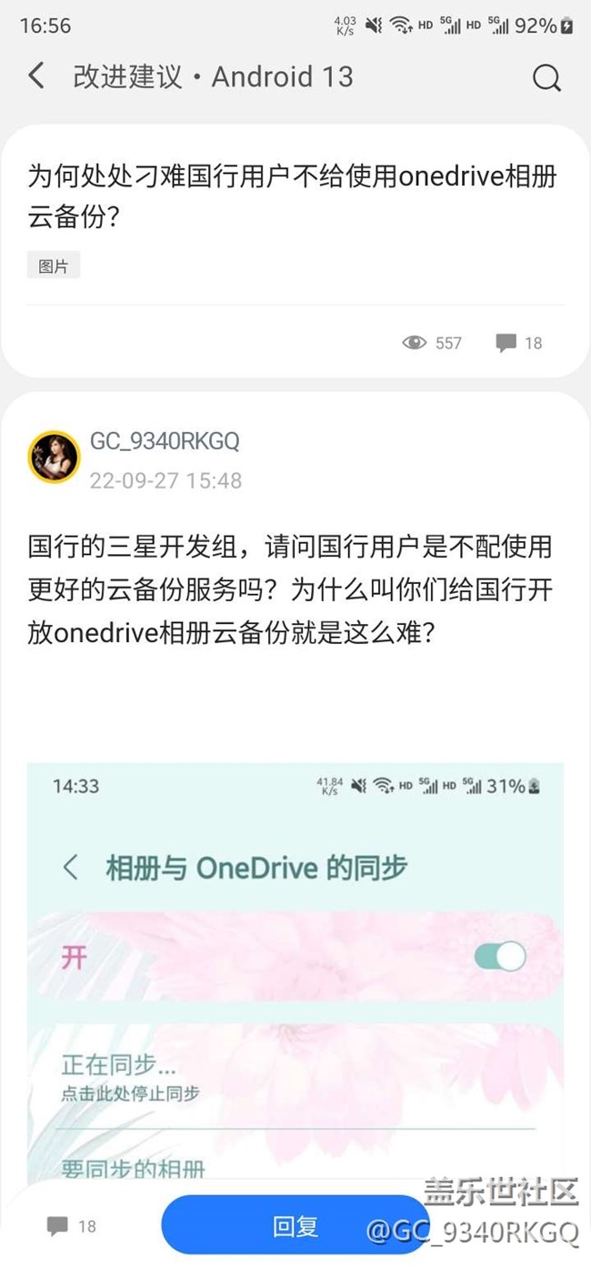 帖子名稱 國行三星已經(jīng)確認(rèn)不會開放onedrive相冊云備份并擺爛