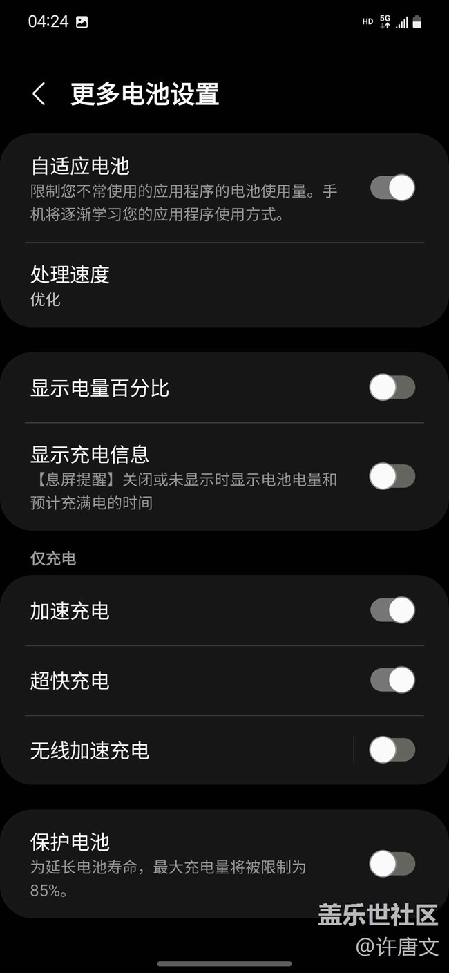 之前為了讓s22性能和續(xù)航有更好的提升,就去某音搜索了一些關(guān)于性能和續(xù)航的視頻,特別是有博主說(shuō)在三星應(yīng)用市場(chǎng)下載那個(gè)good什么的軟件,我之前也下載過(guò),說(shuō)按照他們的設(shè)置能讓你的手機(jī)和性能有更好的提升,但是我按照他們的辦法嘗試過(guò),并沒(méi)有他們說(shuō)的那么好,反而讓自己的手機(jī)發(fā)熱次數(shù)更多,更卡頓,續(xù)航更拉。所以我果斷把手機(jī)格式化掉,然后自己摸索和看過(guò)一些感覺(jué)ok的博主建議就只設(shè)置了以下圖片的這些設(shè)置,一天就兩三次發(fā)熱,因?yàn)槲疫@部手機(jī)是只上微信和刷抖音逛淘寶,看電視。續(xù)航的話就從晚上12點(diǎn)到早上8點(diǎn)大概是剩20左右,這個(gè)是我個(gè)人的上班日常使用,也不能決定你們按照我這個(gè)設(shè)置會(huì)能用那么久,我的s22沒(méi)有下載游戲,沒(méi)有試過(guò)打游戲會(huì)不會(huì)很卡。當(dāng)下參考,原本是語(yǔ)言系統(tǒng)設(shè)置的是英文,但是我覺(jué)得發(fā)英文的感覺(jué)我會(huì)被罵,內(nèi)容是個(gè)人使用經(jīng)歷,說(shuō)的不是很好,你們可以考慮考慮我這個(gè)設(shè)置