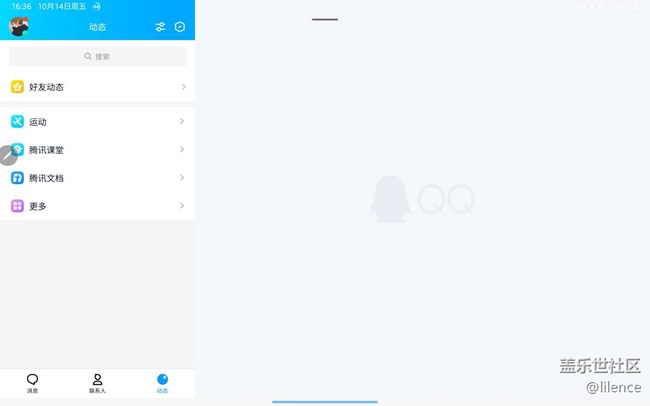 家人們,QQ測試版終于適配了三星(安卓)平板,能和ipad一樣支持平板手機同時登錄,并且變成了ipad那樣的布局??????