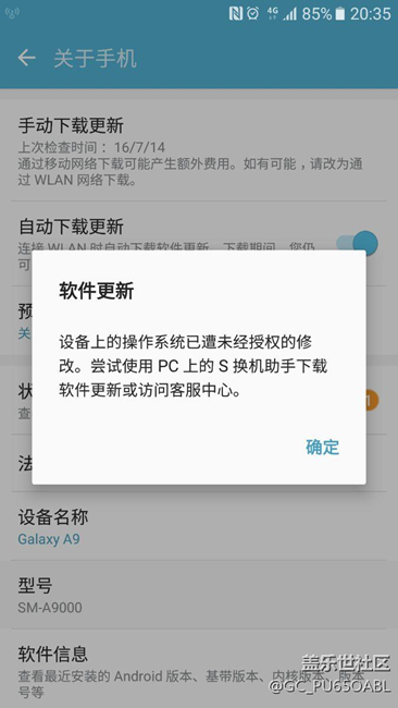 三星a9出現(xiàn)系統(tǒng)通知手機被root 圖片