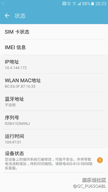 今天早上上班,由于工作環(huán)境不讓帶手機,一直在更衣柜里放,下班后打開手機收到系統(tǒng)通知,你的手機操作系統(tǒng)已被修改,已經(jīng)root,這是什么情況求解,覺得不應(yīng)該啊, my Knox Samsung pay軟件都正常運行,是不是官方系統(tǒng)檢測錯誤,我根本沒root過。