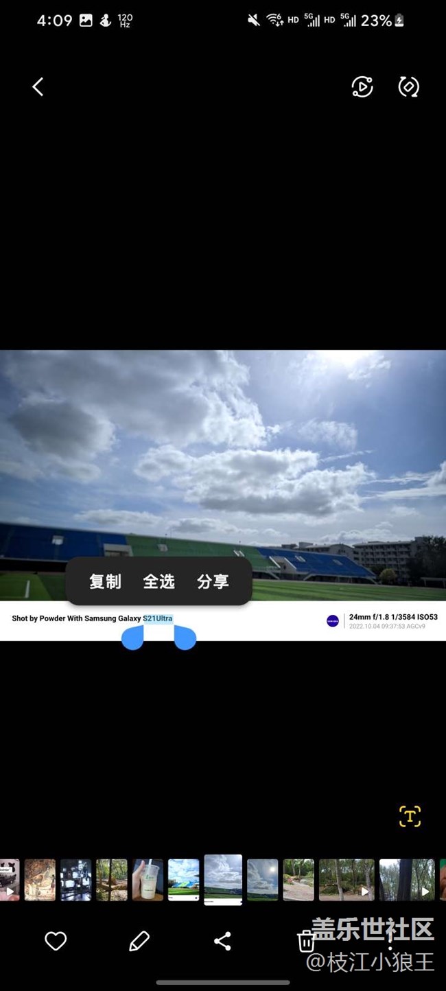 然后5.0不是多了不少功能嘛,我覺得最好用的也是我以后可能經常用的(三星相冊里有一個換天功能,很想用那個,但是觸發(fā)條件挺苛刻的),就是這個長按圖片直接在圖片上復制文字,不用像以前呼出bixby識屏或者拖到qq微信里識別了,方便了很多