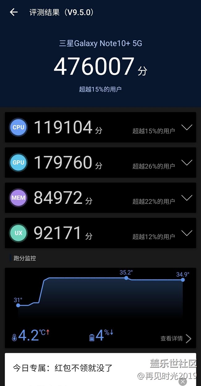 三星note10+分別在省電模式、普通模式和增強模式下的安兔兔跑分對比(最新的9.5.0版本),分數(shù)確實一個比一個高,三星的這個性能設(shè)置還是有效的。差距最大的是省電模式和普通模式,相差了大概5萬分,而普通模式和增強模式只差了1萬分。增強模式下接近華為P40pro+。我日常用為了續(xù)航都是打開的省電模式,亮屏可以將近8個小時,還行。