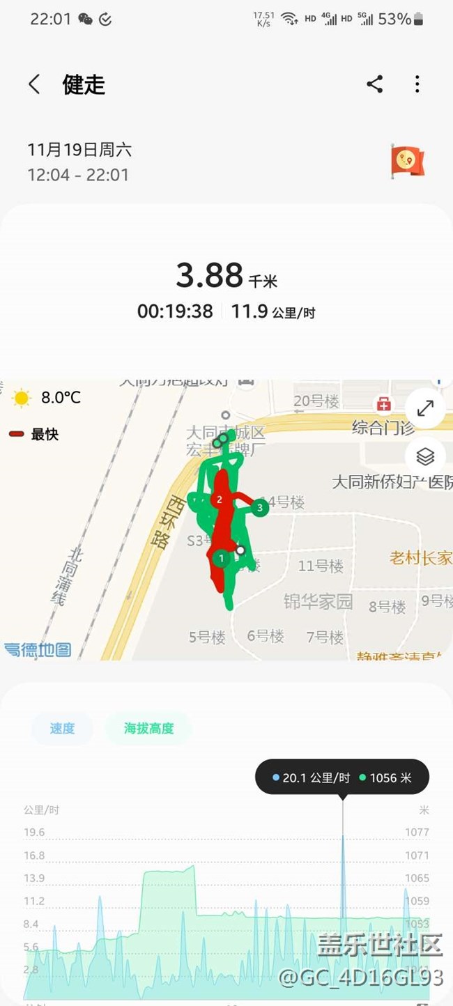 11月19日挑戰(zhàn)健走第24,疫情這么嚴(yán)重在小區(qū)里走走吧。