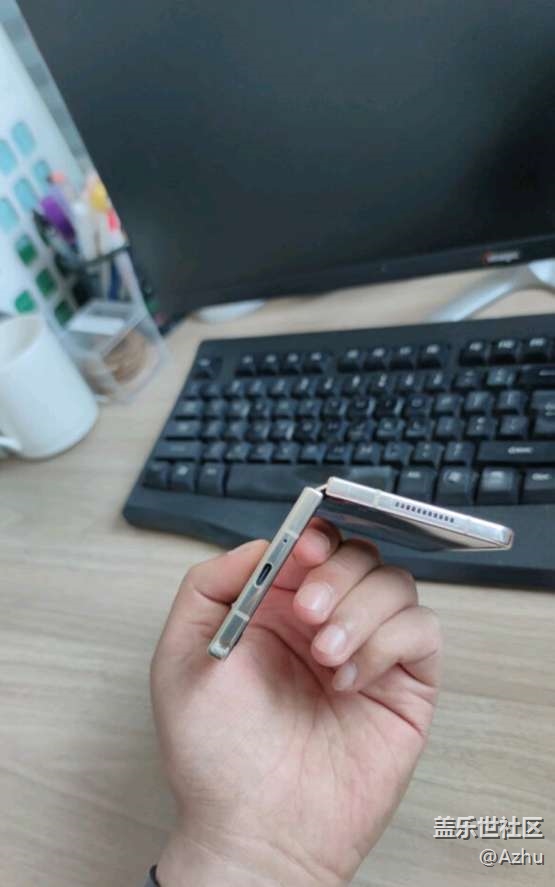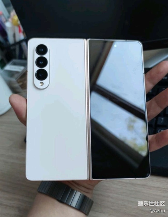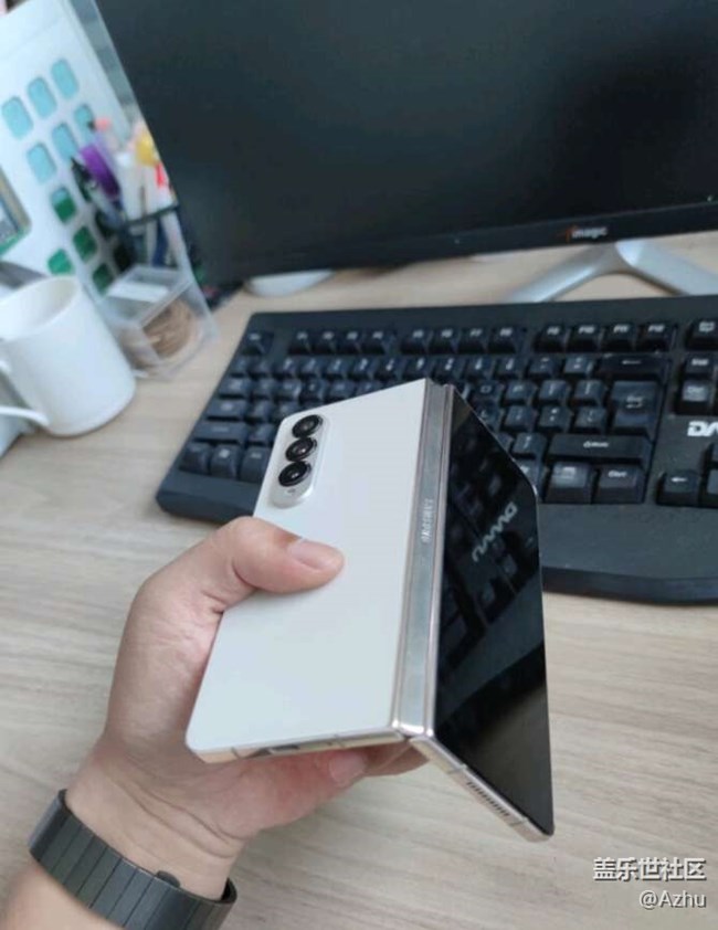 外形外觀: 外觀從顏色到手感俱佳, 拿在手里沒有網(wǎng)上說的遙控器比例,握持更加舒適,云粉金yyds,實際體驗了兩個月,并不墜褲子。不要擔心折疊屏合起來覺得厚。