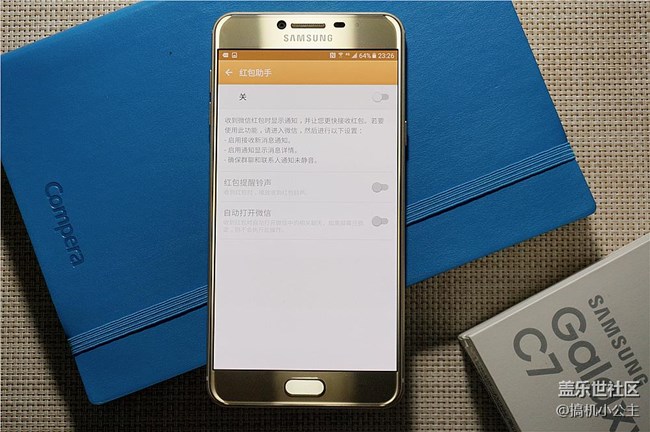 此外,搶紅包這種行為可為是大熱,每天不在微信上搶幾個(gè)紅包,你可能都不好意思說(shuō)你是80/90后,三星Galaxy C系則很合時(shí)宜的添加上了“紅包助手”的功能,甚至把這個(gè)功能的快捷開(kāi)關(guān)放到了下拉通知中心!當(dāng)微信中有紅包時(shí)它會(huì)及時(shí)提醒你,在非鎖屏狀態(tài)時(shí)它還可以自動(dòng)打開(kāi)相應(yīng)的聊天界面。如果在鎖屏狀態(tài)下,就需要?jiǎng)跓┳约合冉鈧€(gè)鎖了,不完善的地方就是,到了界面紅包你要自行手動(dòng)開(kāi)啟,它并不能幫你完成拆包動(dòng)作,當(dāng)然,這也是“紅包助手”與令人厭棄的“紅包*”的根本區(qū)別。