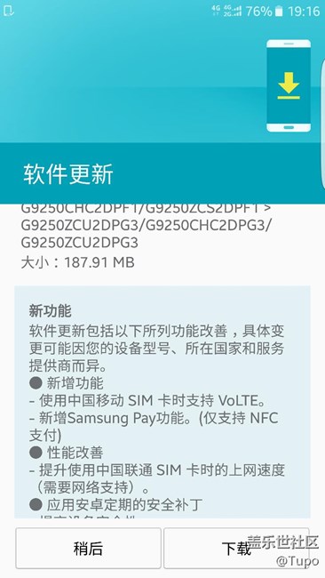 國行g(shù)9250收到了更新,有samsung pay 和高清語音通話了啦