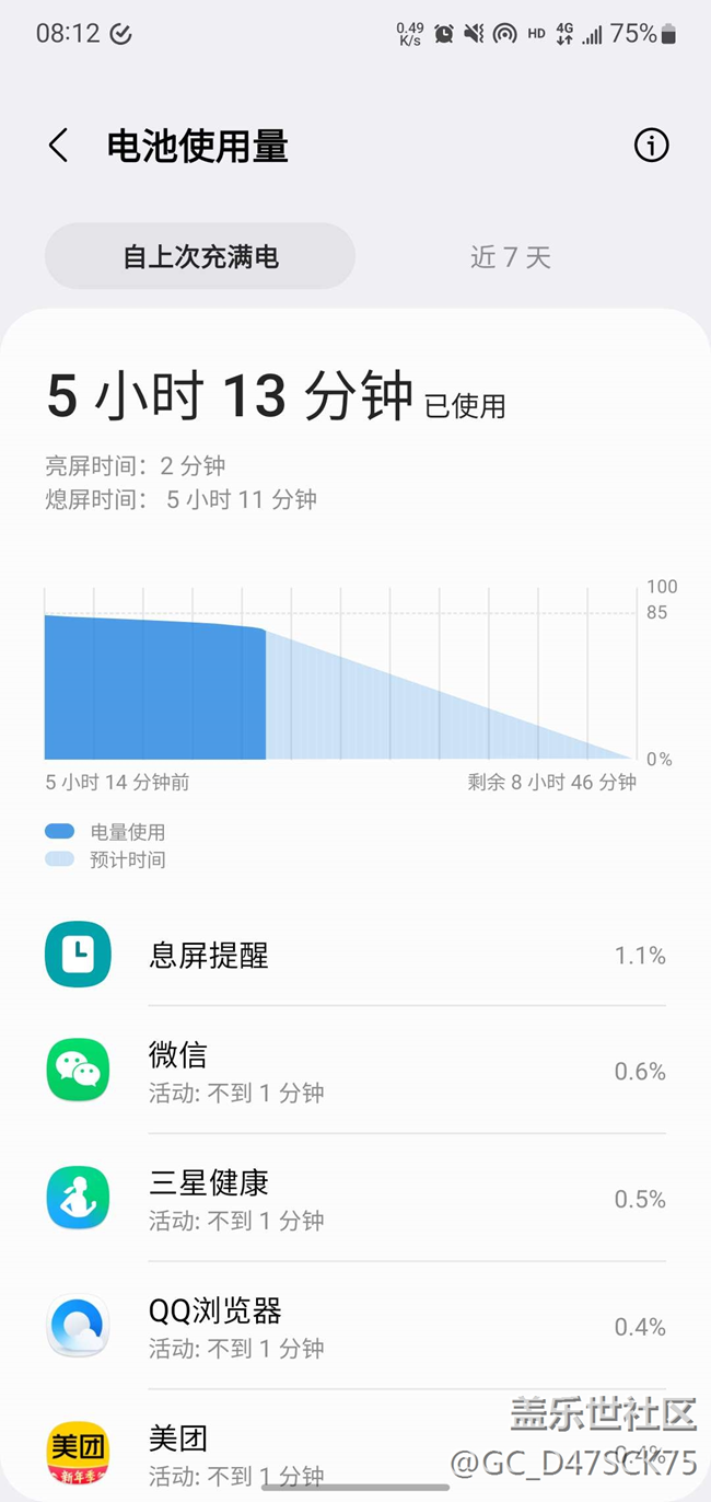 上圖是a52更新5.0后待機(jī)一晚上只耗電1%