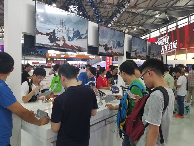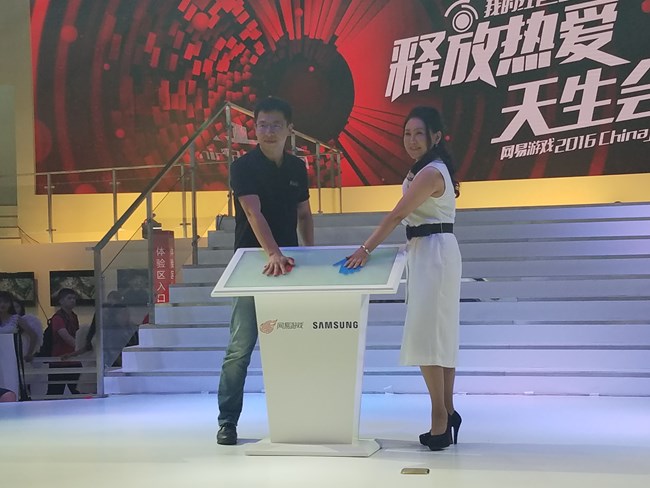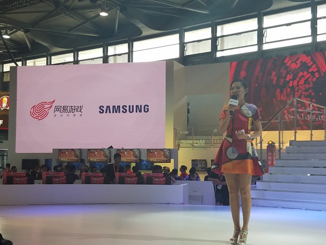 接下來我們一起看看網易游戲展臺。本屆CJ展三星與網易進行了深度合作,網易展臺的三星設備隨處可見。