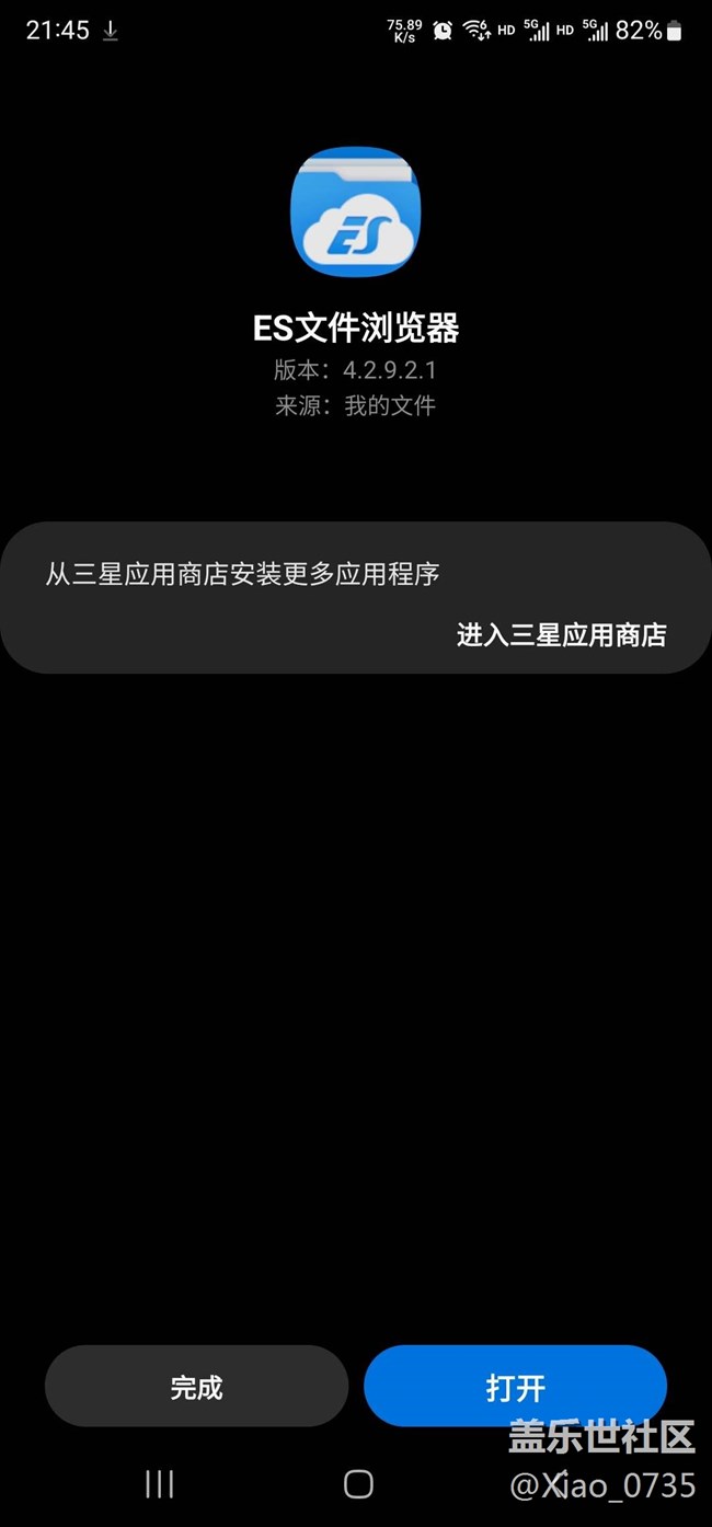 用“我的文件”安裝應(yīng)用程序app時(shí),會(huì)跳出“從三星應(yīng)用商店安裝更多應(yīng)用程序”的提示。