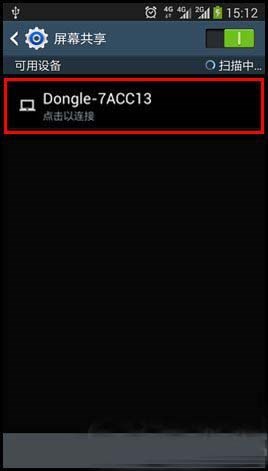 3、發(fā)向可用設(shè)備后,點擊已掃描的可用設(shè)備【Dongle-7ACC13】,軟件狗名稱將顯示在您的HDTV上。