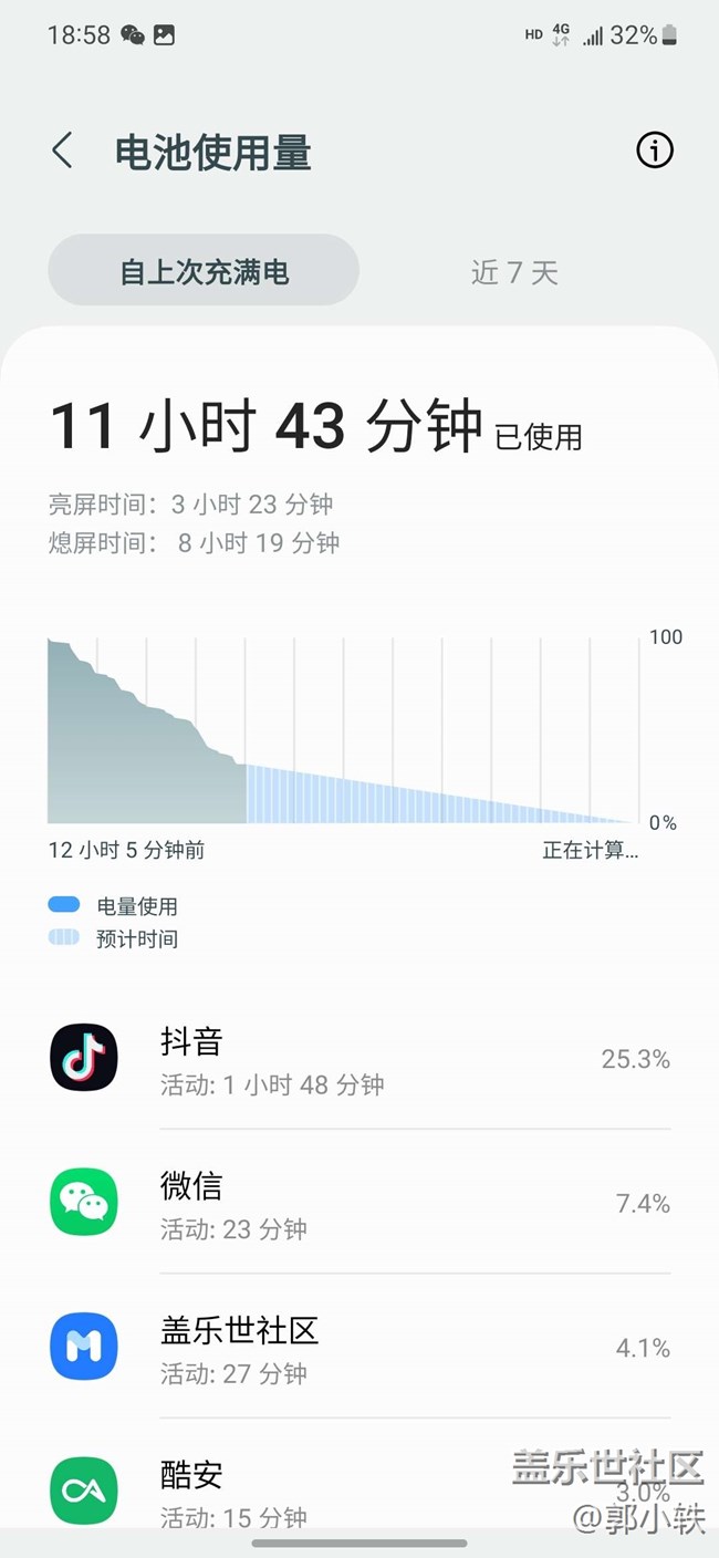 全程4g 沒有wifi 120hz   早上7點(diǎn)出門  早上7點(diǎn)下班到家   還有30多的點(diǎn)   對于我這種不玩游戲中度使用 一天一沖就可以了