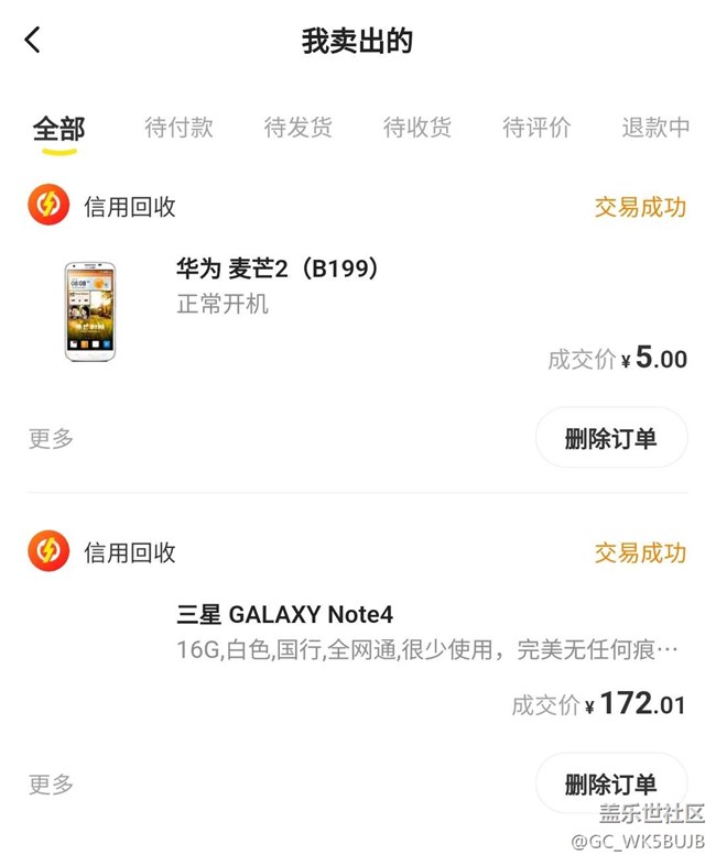 比較落伍,第一次使用咸魚,打開居然還有兩筆交易記錄,原來之前在天貓上回收舊手機的