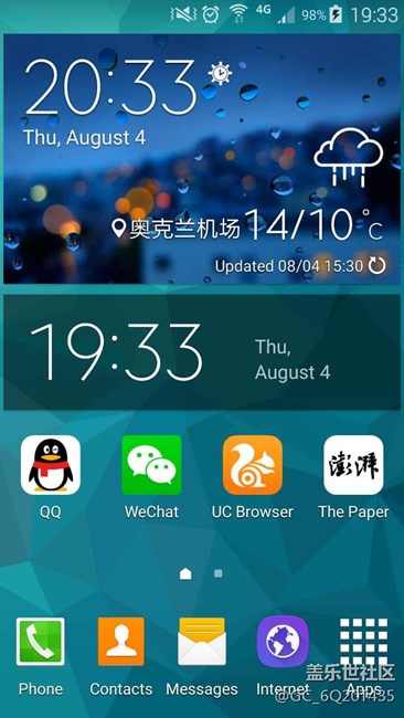 之前在國(guó)內(nèi)使用S5的時(shí)候主頁(yè)一直用的天氣插件,一直沒(méi)有注意時(shí)間顯示的問(wèn)題,因?yàn)樵趪?guó)內(nèi)一直是沒(méi)有問(wèn)題的。一年前來(lái)到新西蘭,就發(fā)現(xiàn)這個(gè)天氣插件不能正常顯示時(shí)間了,準(zhǔn)確的說(shuō)是水土不服了,雖然是國(guó)行,但也不意味著出國(guó)就不能用了吧。雖然只是時(shí)間顯示問(wèn)題,但看著真的很別扭。