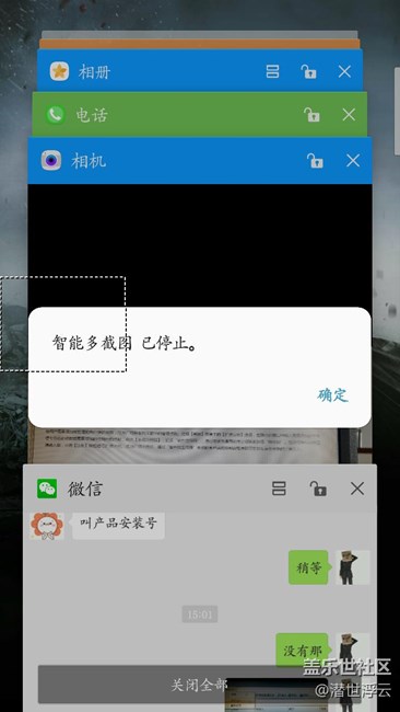 智能多截圖,連續(xù)截圖發(fā)微信兩次就死機,觸屏不能用,spen拔出有提示,實體鍵能用,其他都操作不了,