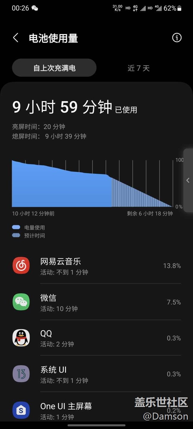 昨天更新的,就息屏聽聽音樂,也沒干啥,電就沒了