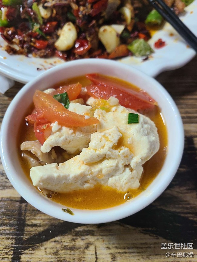 再去吃當(dāng)?shù)氐拿朗常焊伸苑誓c,西紅柿豆花肥腸,酸菜干飯