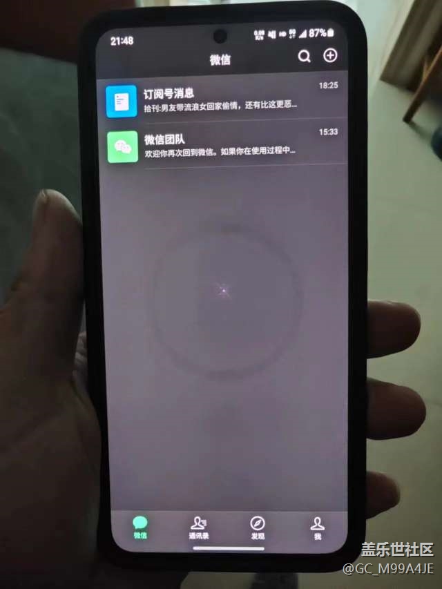 灰色背景下s23屏幕中間有個(gè)圓圈是什么情況 圖片