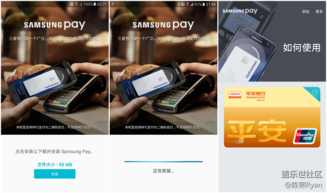 值得注意的是雖然定位中端,但是依舊支持了目前三星大力推廣的Samsung Pay(中文名:三星智付),除了不支持旗艦機的MST支付(比較老的POS機也支持)之外,基于NFC的閃付、支付寶(掃碼)等模式都得到了支持,據(jù)傳過后還會支持交通卡等常用物品的綁定 —— 以后出門只需要帶著手機就好,錢包、鑰匙、交通卡以及各種銀行卡都集合在手機當中,無疑是十分方便的。