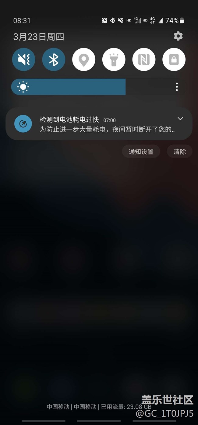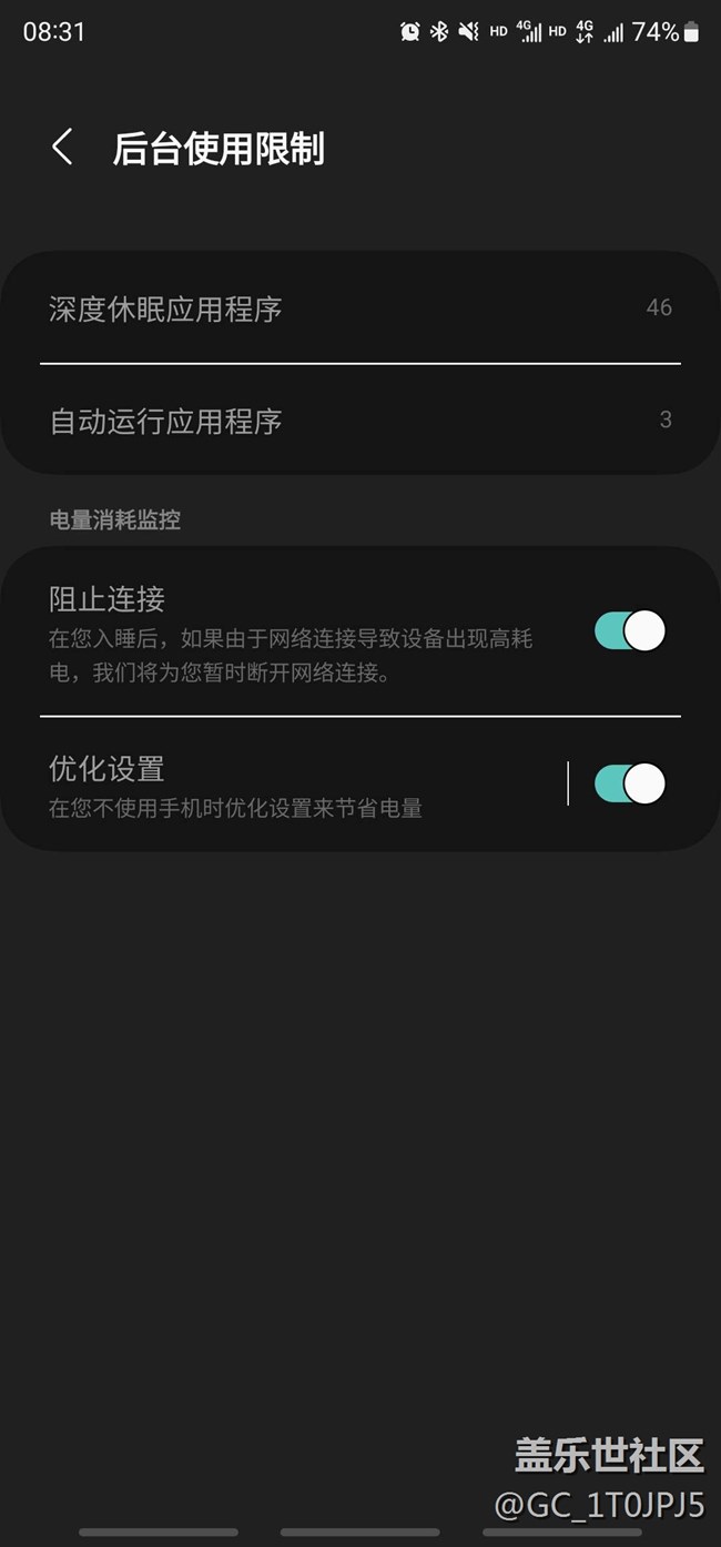 到現(xiàn)在的oneui5.1,睡一覺就能從90%降到74%(下圖明顯看出來半夜掉電很快)