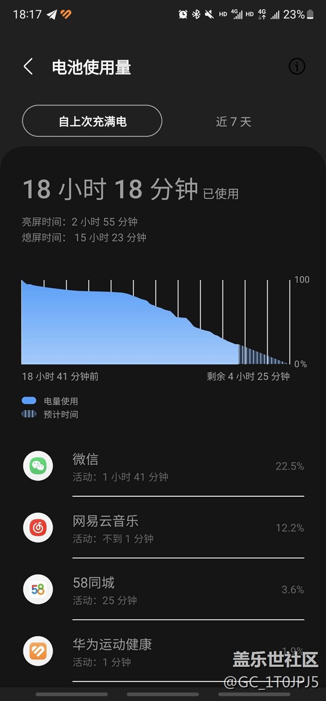 以前oneui4.x時(shí)期亮屏5-6小時(shí)的樣子,自從升了5.0(注:數(shù)據(jù)沒有雙清!),使用習(xí)慣沒有變,一覺睡醒就總提示耗電量過大,但后臺(tái)該限的都限了,找不到原因