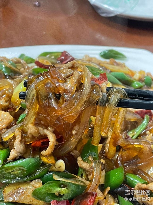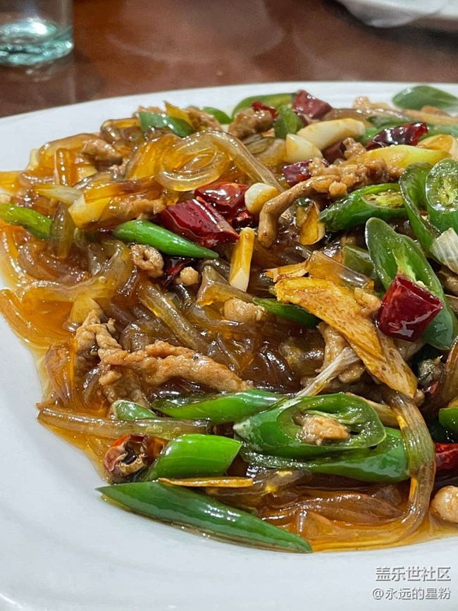 1臘皮肉絲:這粉條粗粗的,介于寬粉和紅薯粉絲之間,但是口感真的賊好吃,半Q彈,又香又下飯。這道菜也真的只有在這家店吃到過。