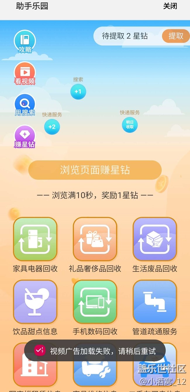 為什么助手樂(lè)園,賺星鉆廣告也看不了?? 圖片