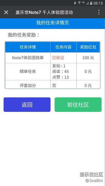 我試了下,曬機的帖子發(fā)在note7的產(chǎn)品討論區(qū)微信的活動頁面是不會記錄獎勵的,只有發(fā)在note7體驗區(qū)才會被記錄
