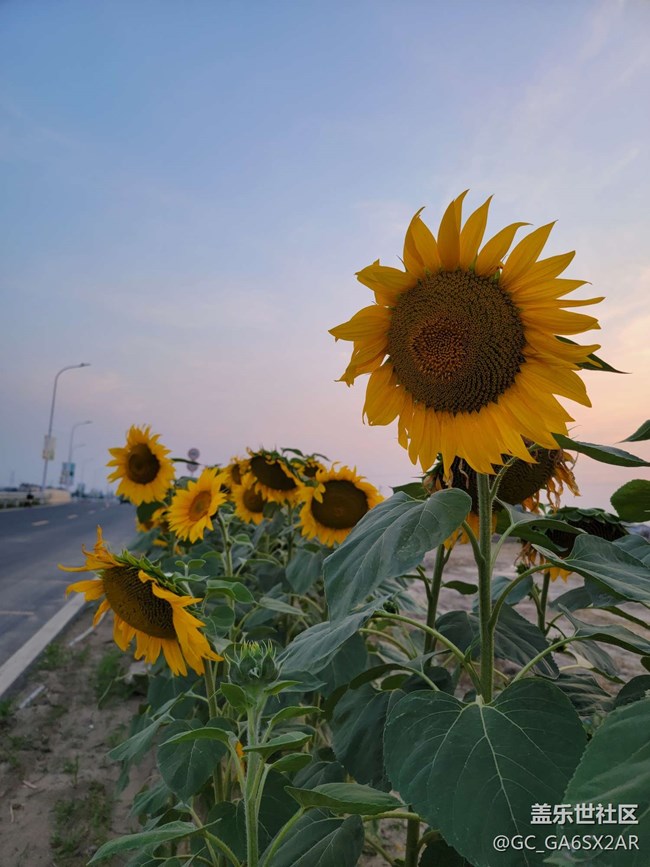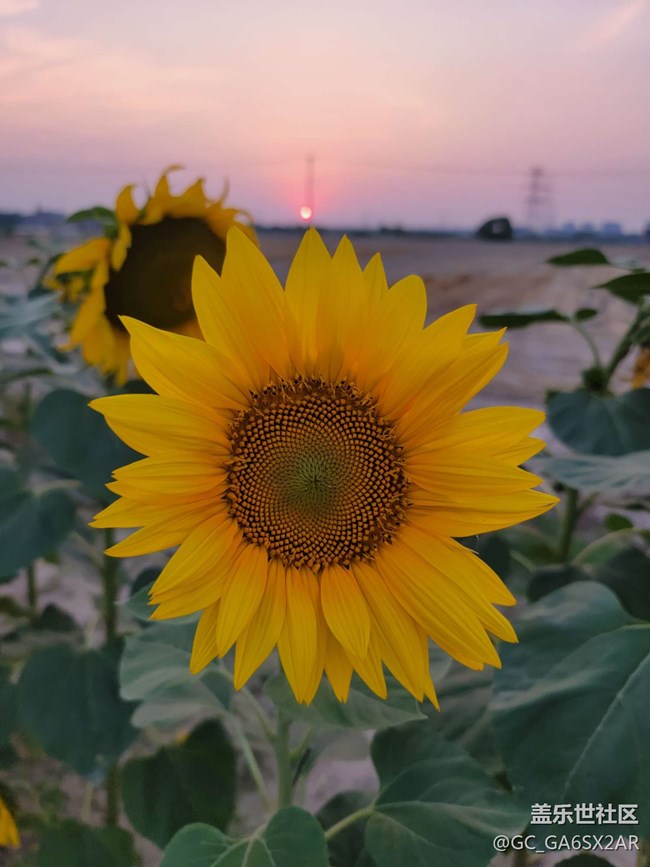 落日余暉下的向日葵 圖片