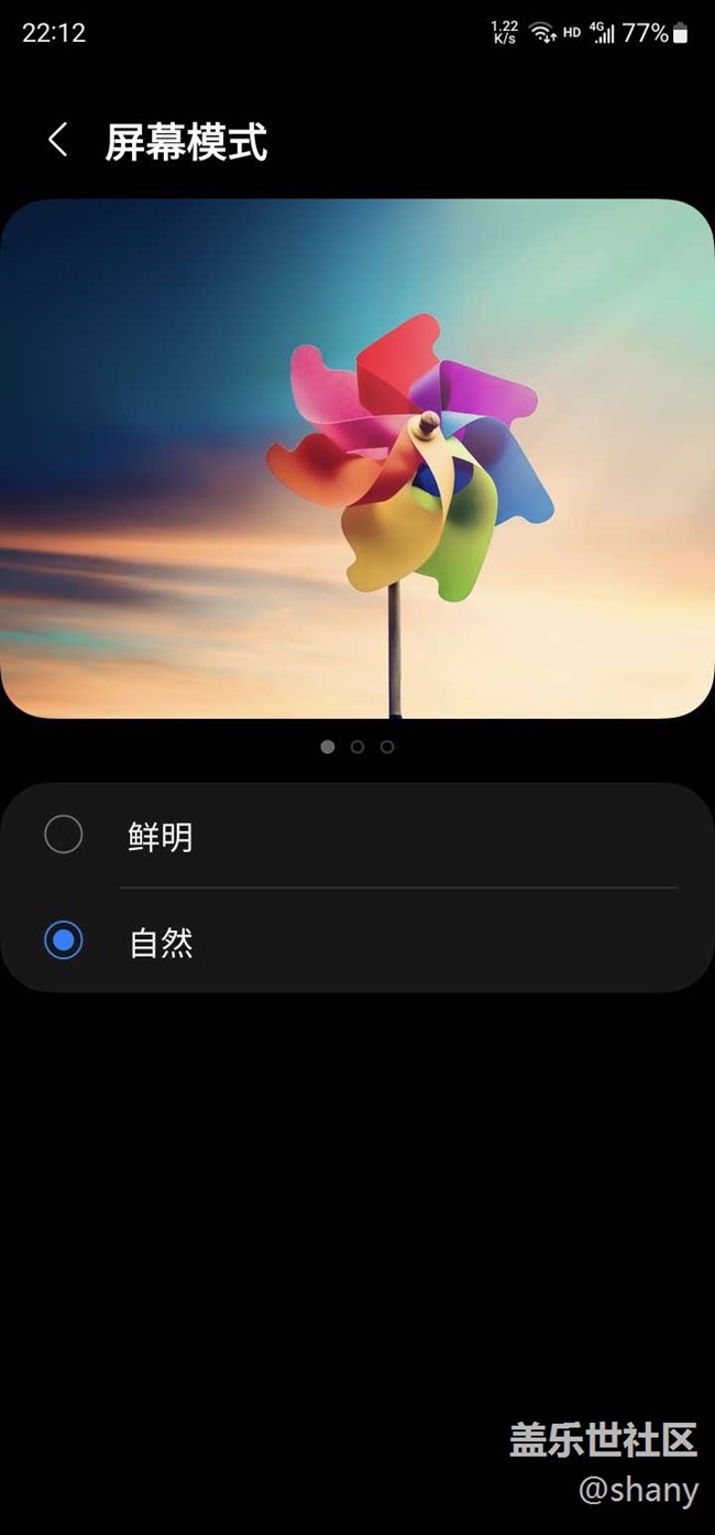 目前只有鮮艷和自然,一個(gè)太艷麗,對(duì)眼睛很不友好(多數(shù)糾結(jié)屏幕模式的都反應(yīng)),一個(gè)顯示太素,就像 lcd 屏一樣(白瞎了這個(gè)頂級(jí)屏了)。第三方調(diào)出影院模式,多數(shù)場(chǎng)景更好的選擇,但畢竟是第三方,而且有些場(chǎng)景顏色明顯偏離。想來(lái)想去,還是寄希望于官方了。這個(gè)的確是個(gè)急需解決的問題