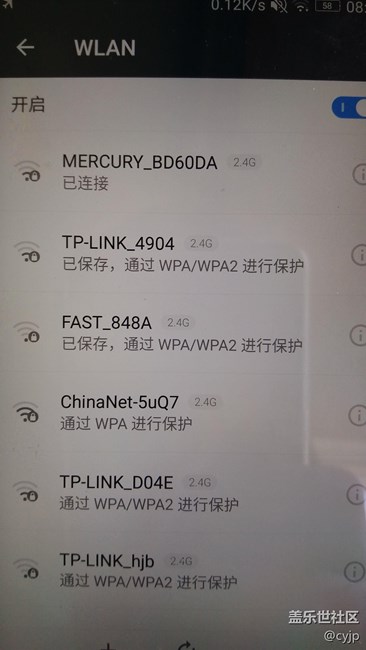 在同一個(gè)地方,家里兩個(gè)WiFi,聯(lián)想都能搜到,a9只能搜到一個(gè),信號(hào)沒問題