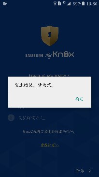 國行G9208已更新OJA未root,從三星應用商店下載安裝My Knox,開始運行顯示錯誤如圖,請問應如何解決?