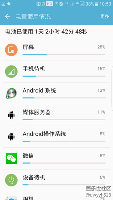 下面:2016-9-11更新:請(qǐng)注意自己的Android系統(tǒng)里:保持喚醒后面的時(shí)間。如果明顯偏高就屬于不正常(這就是耗電的原因)