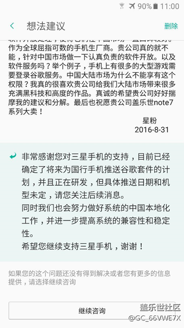 今天剛剛給三星公司吐槽了一下。 圖片