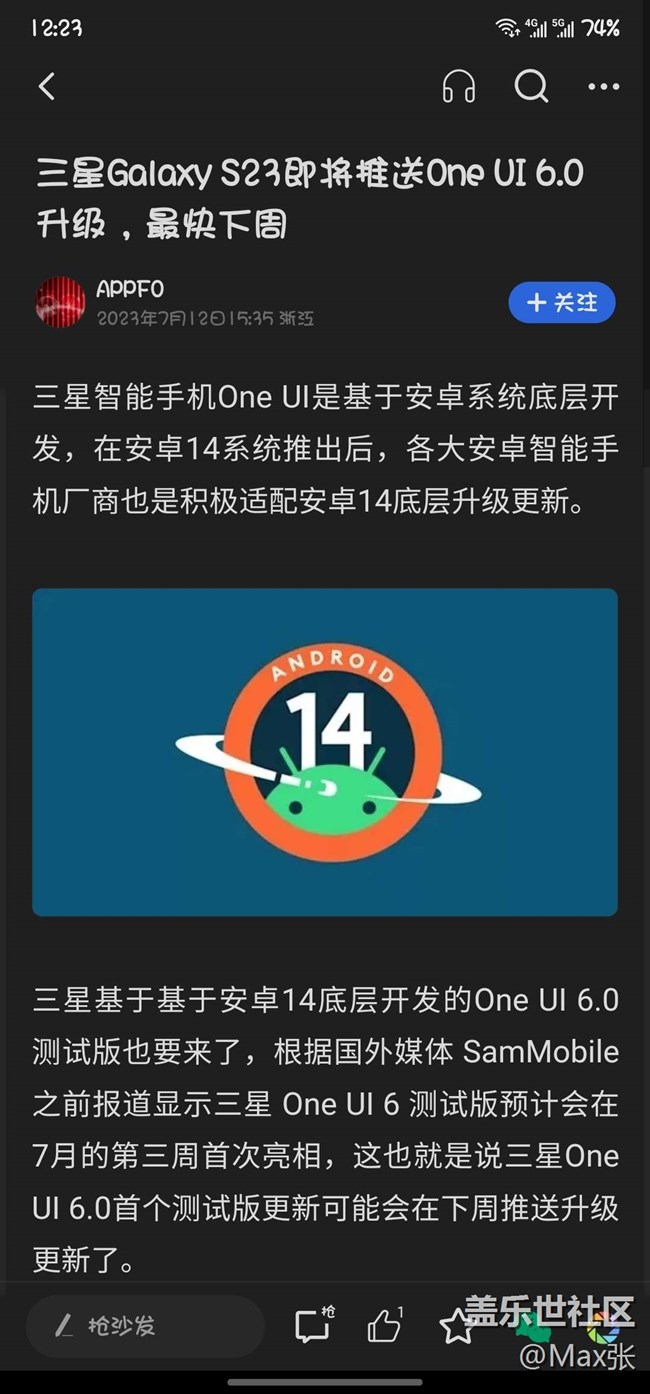 帖子名稱: S23要升級oneUI6.0了,22不知道要到什么時(shí)候