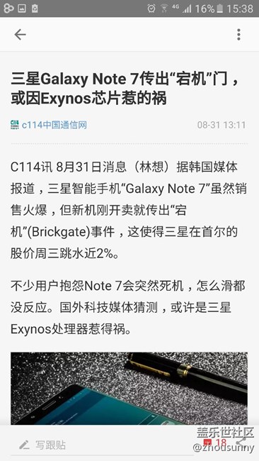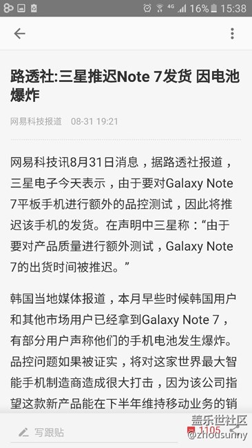 近日出現(xiàn)了兩起Note7在充電中爆炸的報道,雖然這兩次爆炸可能都是因?yàn)槭褂昧说谌匠潆娖鲗?dǎo)致,但僅僅使用第三方充電器就會導(dǎo)致手機(jī)爆炸,這說明手機(jī)本身的設(shè)計或許也存在一定的問題,值得一提的是,兩部手機(jī)貌似都是韓版三星Note7。