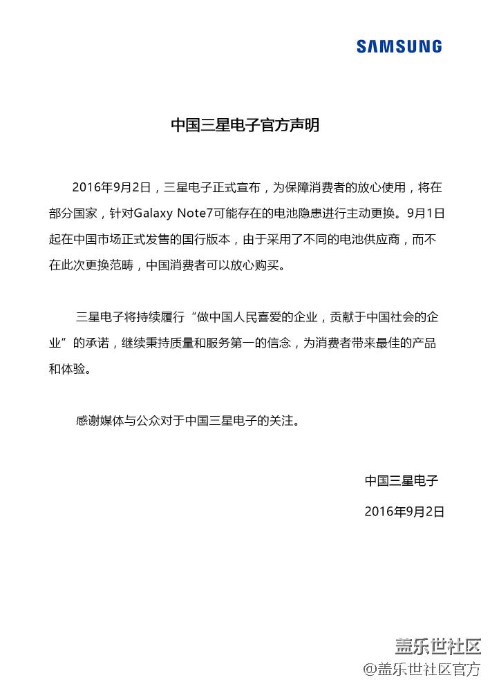 中國三星電子官方聲明 圖片