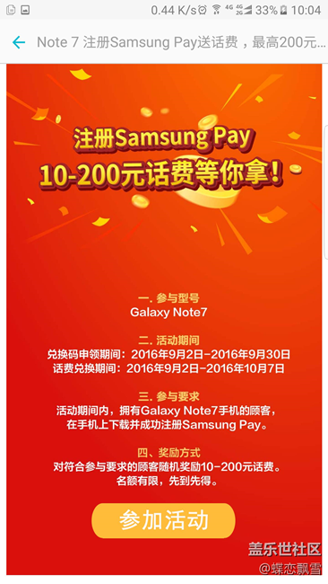 活動入口在三星pay里,趕緊行動吧~