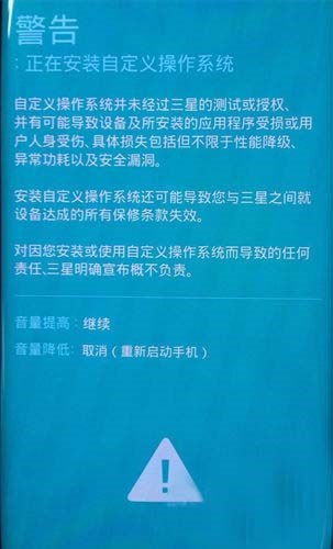 2、關(guān)機(jī),同時(shí)按住 音量下鍵+HOME鍵+電源鍵,出現(xiàn)感嘆號(hào)界面后再按一下 音量上鍵,確認(rèn)進(jìn)入,再插入數(shù)據(jù)線連接電腦。