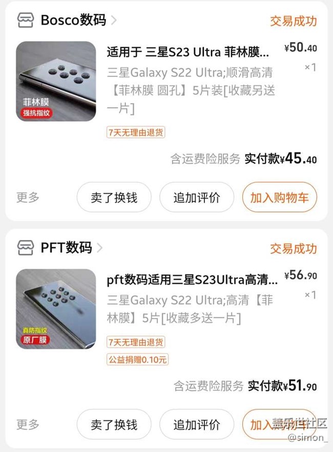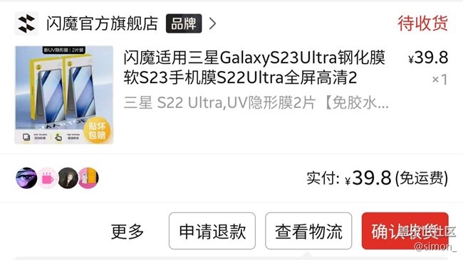 以前note8的時候用了uv鋼化膜,貼膜真的很麻煩,后面換了note10,水凝膜試了,最后還是用普通的塑料膜,然后用了s22u以后,一直用pet的膜,后面發(fā)現(xiàn)還有另外一家叫bosco,質(zhì)量差不多,pet家的缺點是光照下會有彩虹紋,Bosco缺點是貼上以后霧蒙蒙的,要使用一段時間才會消掉,這兩家的疏油層都一般,但是比較便宜,然后就是閃魔的光固膜,以前有買雜牌的光固膜但是貼失敗了,所以很久沒試,閃魔的算是好貼,也比上面兩家滑,就是不知道疏油層能用多久;另外,如果不是自己熟悉的膜,最好用pdd買,貼壞了如果不補發(fā)就申請僅退款,閃魔家pdd比淘寶貴5塊。