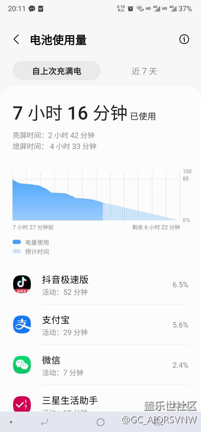 85%電量,亮屏不夠3小時(shí),剩余37% 圖片