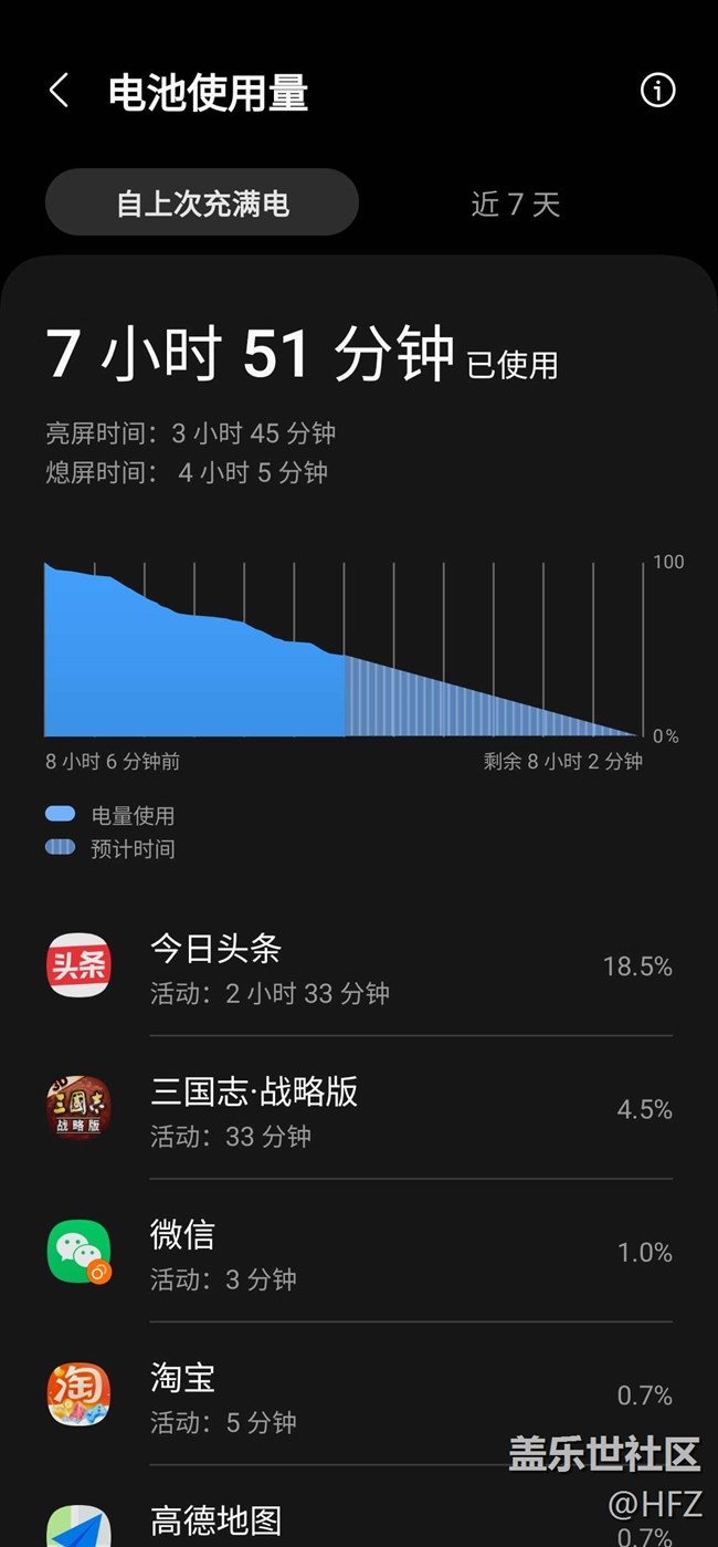3、可能我玩手游極少的原因,我的電池?fù)p耗很小,現(xiàn)在日常亮屏?xí)r間基本都還有6小時(shí)
