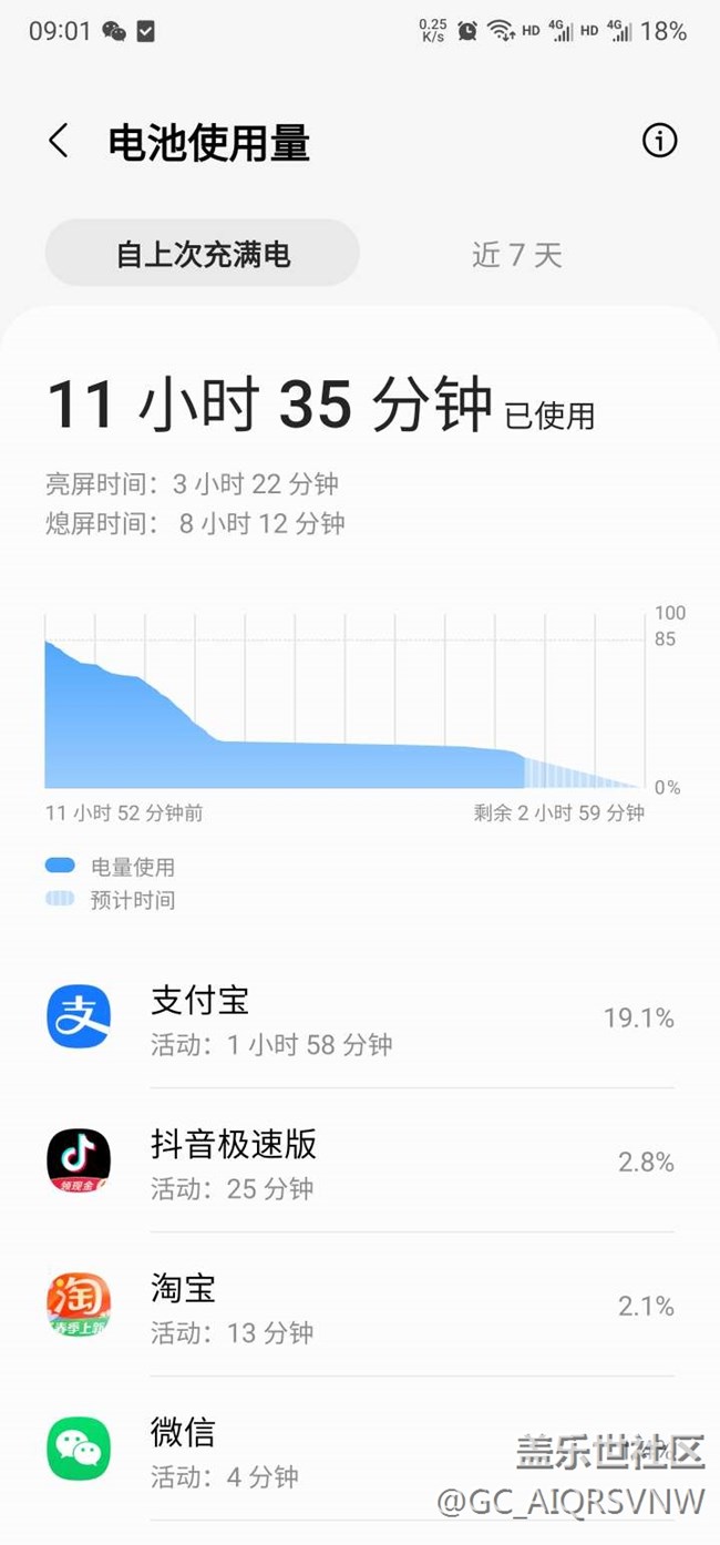 亮屏三個(gè)半小時(shí)左右,剩余18% 圖片