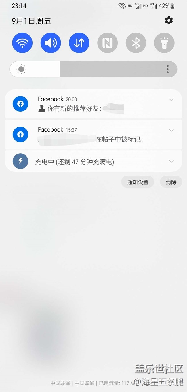 前幾天duang duang 彈出來倆通知,一看是fb,我尋思我也沒開啊。當(dāng)時(shí)沒在意,剛剛又彈了。我研究了一下,兩次都是在我充電時(shí)候彈的。我手機(jī)有個(gè)‘日常程序’是充電時(shí)打開同步,也就是說是‘同步’給彈的消息。