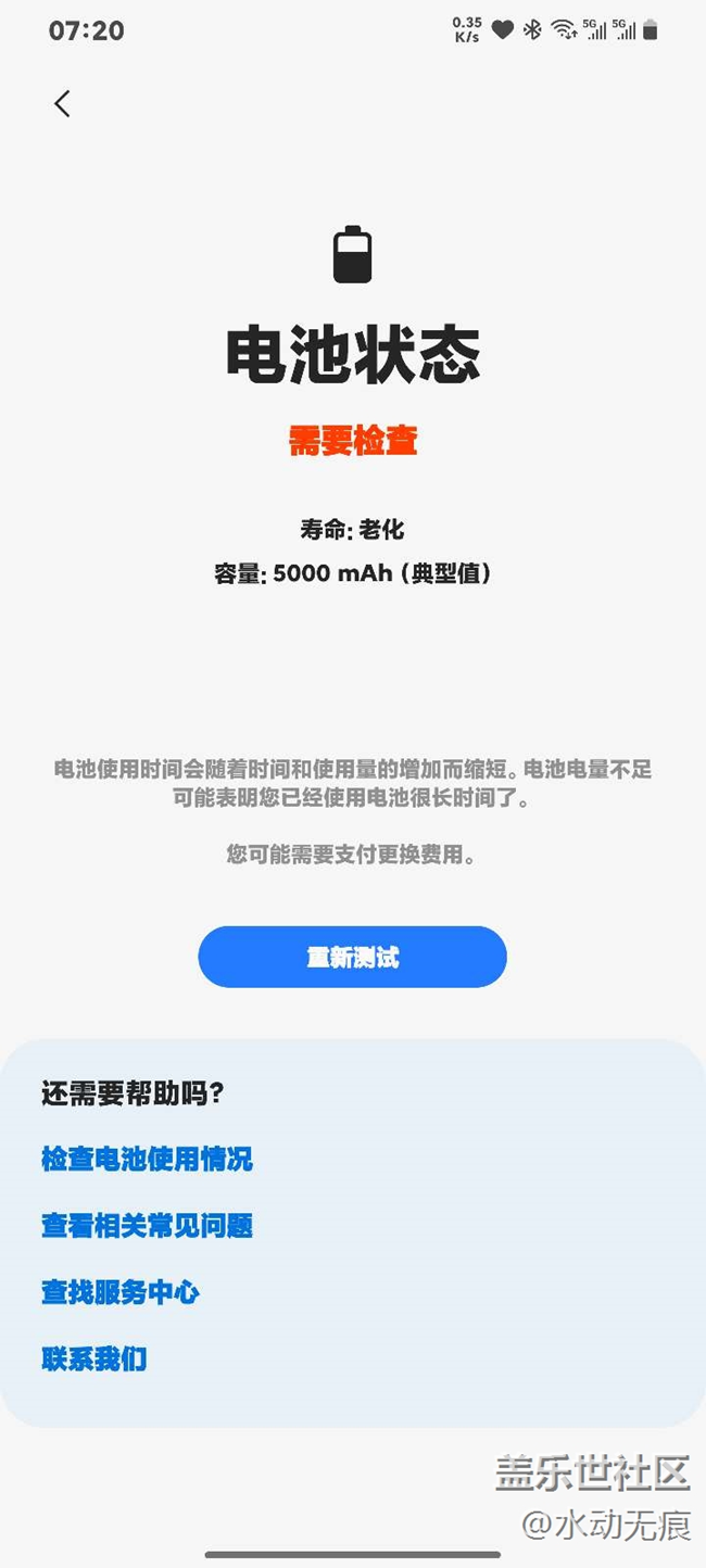 星期一剛在三星售后換了電池,結(jié)果今天使用社區(qū)一檢測,還是顯示老化,這是什么原因???