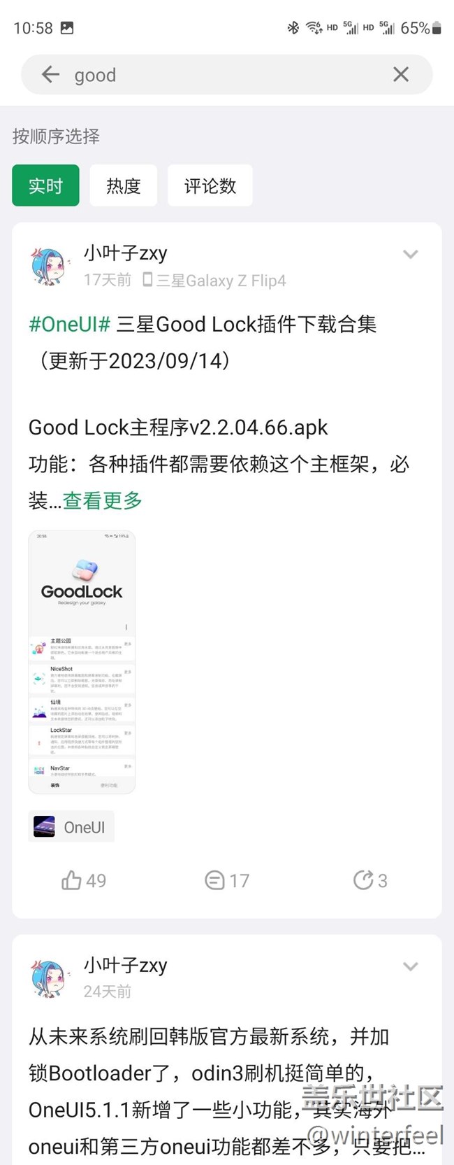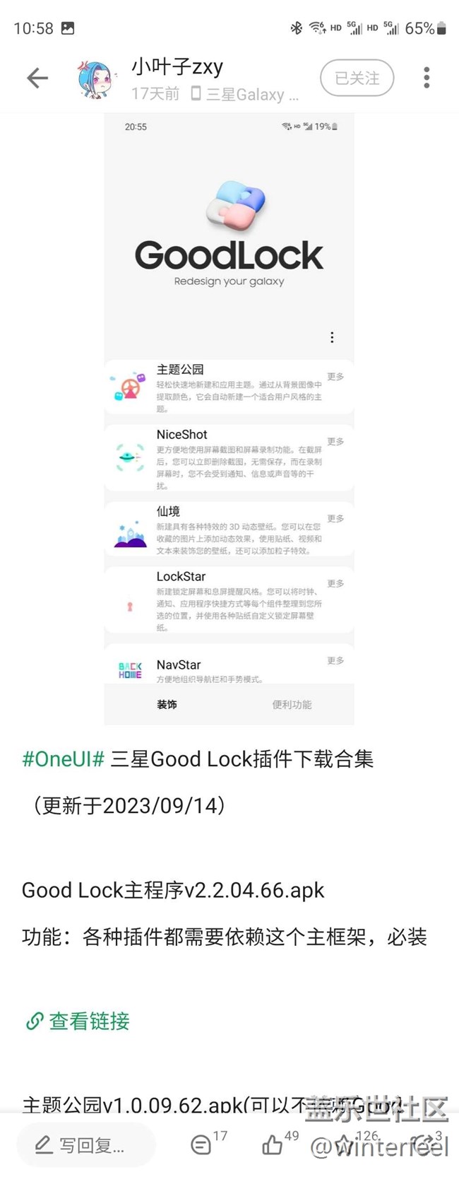 在星粉#梓貽丶#的帖子里看到了星粉#一只小柯基#的回復(fù):“你在酷安里面搜索“小葉子ZXY”他的帖子里面都有。”