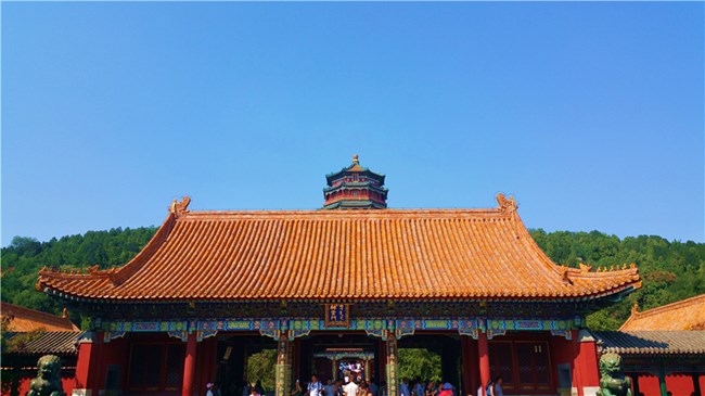 這后面冒尖的就是佛香閣。后面則是萬(wàn)壽山,我們接下來(lái)就要繞道山后面從后山出北門(mén)。