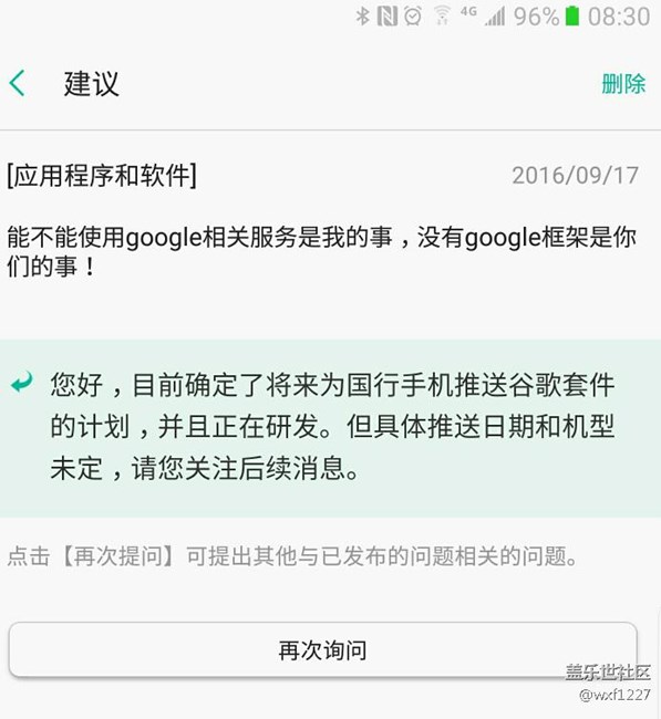 關(guān)于國行是否加入google框架,三星是這樣回復(fù)的 圖片